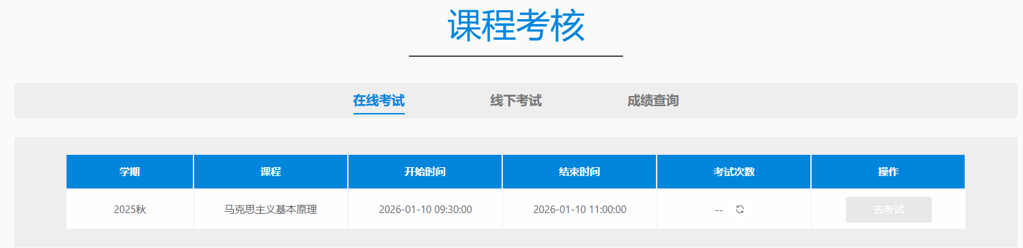 根据《437bwin必赢国际官网高等学历继续教育本科毕业生学业水平测试办法》上理工继教【2020】15号文,437bwin必赢国际官网将于2026年1月10日9:30-11:00举行《马克思主义基本原理》课程考试。考生在规定时间内登录“教务管理系统”→课程考核→去考试,进行考试。